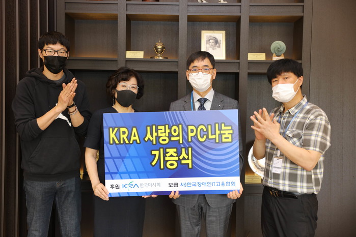 [세계타임즈 심하린 기자]한국마사회(회장 김우남)가 미활용 IT기기를 장애인, 저소득가정 등 사회취약계층을 위해 무상 기증했다. 마사회는 지난17일 ‘사랑의 PC나눔’기증식을 열고 데스크톱PC 674대를 포함한 IT기기 총 951대를 ‘한국IT복지진흥원’과 ‘한국장애인IT고용협회’에 전달했다.