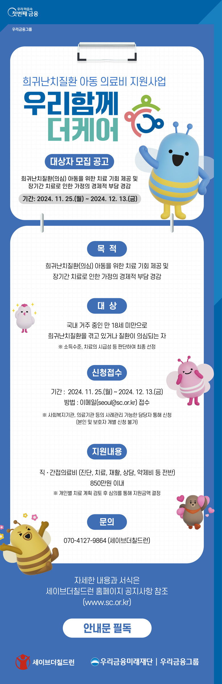 의료비 지원신청은 12월 13일까지며, 자세한 내용은 세이브더칠드런 홈페이지(www.sc.or.kr)에서 확인할 수 있다.