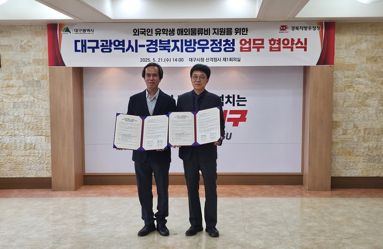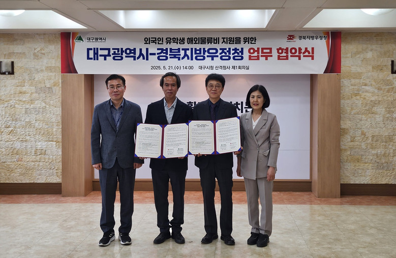 ▸ 대구 지역 외국인 유학생 해외물류비 요금 10% 할인 [세계타임즈=대구 한윤석 기자] 대구광역시는 경북지방우정청과 5월 21일(수) 오후 2시, 산격청사에서 ‘외국인 유학생 해외물류비 지원을 위한 업무 협약’을 체결했다.
