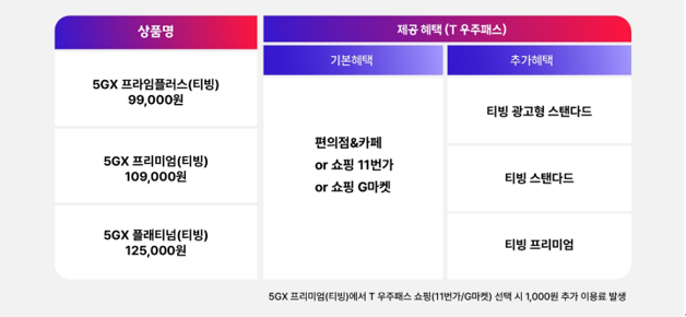 모든 전용 요금제는 T 우주패스 형태로 제공돼 이용자는 이동통신 서비스, 티빙 외에도 식음료, 콘텐츠 등 다양한 부가 혜택을 통합적으로 누릴 수 있다.