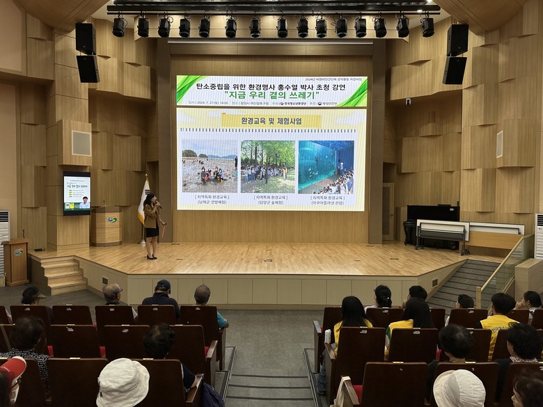 [세계타임즈]최성룡기자 = 한국청소년환경단(총재 남성용)은 7월 27일 창원시 마산합포구청에서 기후위기 극복 및 탄소중립 실천을 주제로 환경명사 특강을 실시했다.