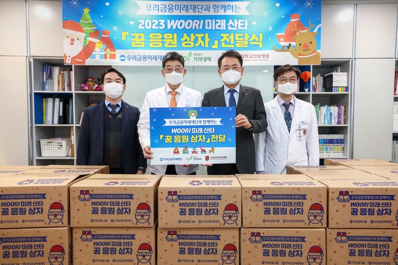 우리금융미래재단 관계자는“아이들의 쾌유를 기원하며 아이들이 선물상자를 받고 행복한 크리스마스를 보내길 바란다”며, “우리금융그룹과 우리금융미래재단은 아이들에게 더 따뜻한 미래를 선물하기 위해 지속적으로 응원할 것”이라고 밝혔다.