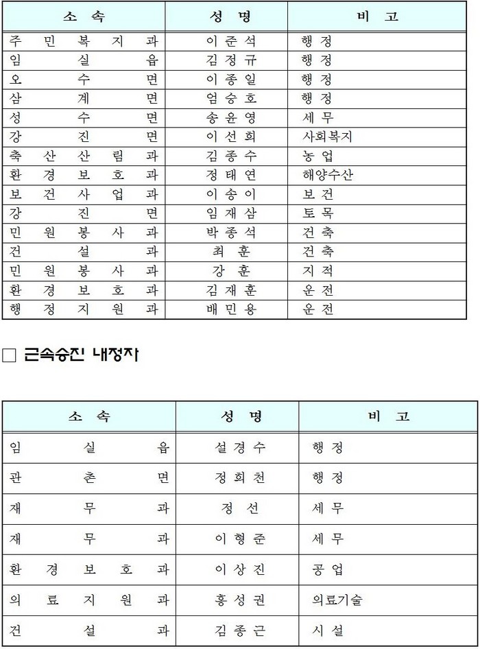 ○ 격무부서 근무경력, 승진후보자명부 선순위자, 직무성과 우수자, 업무추진 능력, 현직급 근속기간 등을 종합적으로 고려하여 임용