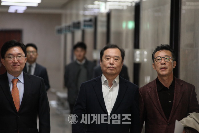 [세계타임즈 김인수 기자]김병준 자유한국당 비대위원장이 2일 국회에서 기자간담회를 갖기 위해 회견장으로 들어서고 있다.