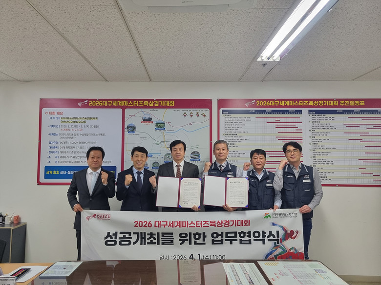 [세계타임즈=대구 한윤석 기자] 2026대구세계마스터즈육상경기대회 조직위원회는 4월 1일(수) 대구공무원노동조합과 대구 및 전국 공무원 선수 참여 확대를 위한 업무협약(MOU)을 체결하고 본격적인 홍보 협력에 나선다.