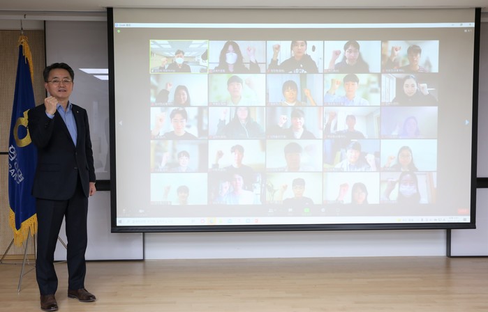 대화의 시간은 코로나19 확산에 따라 화상회의 시스템을 이용해 온라인으로 진행했다. 신규직원 25명 전원은 화상으로 행사에 참석했다.