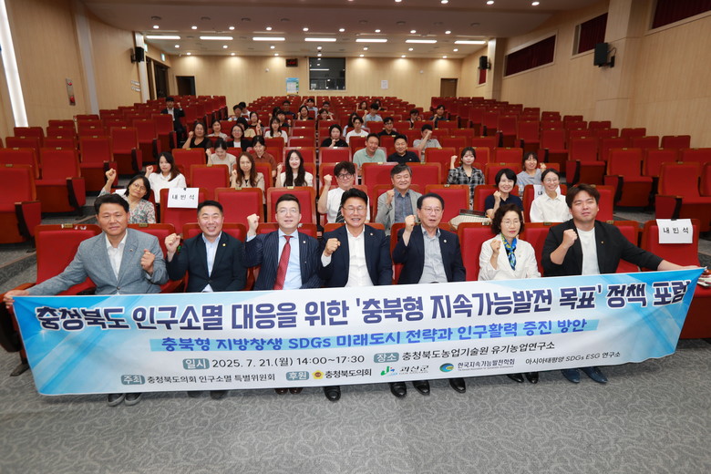 [충북 세계타임즈=이현진 기자] 충북도의회 인구소멸대응대책 특별위원회(위원장 노금식)는 21일 충북유기농업연구소(괴산군) 대강당에서 ‘충북형 지속가능발전 목표 정책연구포럼’을 열고 지방소멸 위기 대응을 위한 실질적 대안을 논의했다.