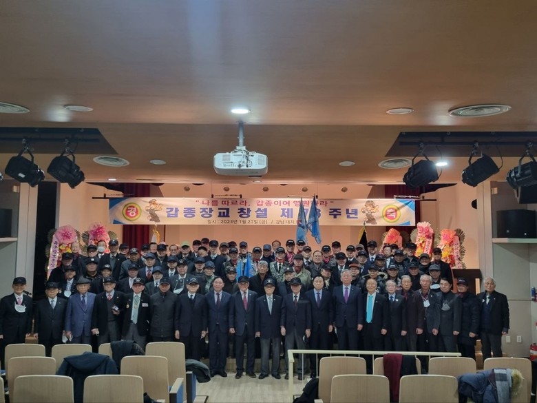 [세계타임즈 백진욱 기자] 오늘 27일 오전 육군 갑종장교전우회(회장 박훤재 예, 육군소장)가 서울 강남구 대치평생학습관에서 73년 만에 창설을 기념하는 첫 행사를 갖고 비록 노병들이지만 목숨을 다하는 그날까지 대한민국을 지키겠다는 호국의지를 굳게 다졌다.