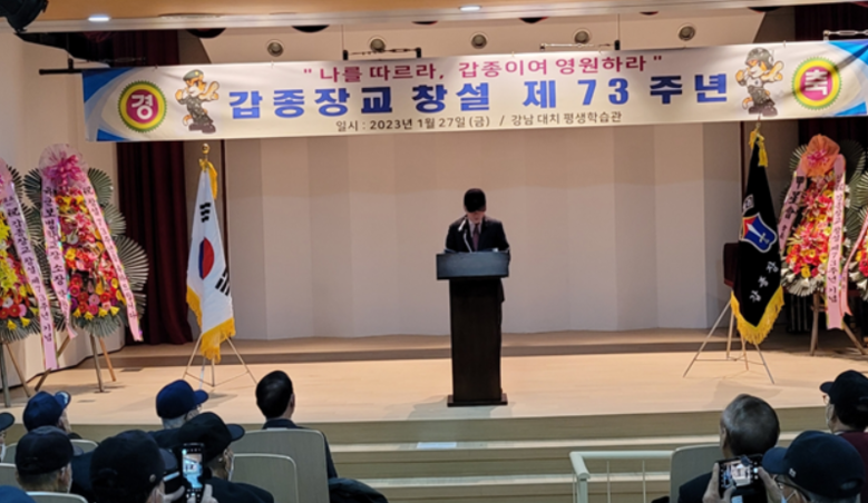이날 첫 창설기념행사에는 신상태 재향군인회장, 손희원 6.25참전유공자 회장, 남재한 전 국회의원, 정수성 예비역육군대장 등 내빈들과 갑종장교 1기부터 230기까지 각 기 회장 및 고문, 운영위원, 갑성회(갑종성우회)회원 등 150여명이 참석한 가운데 갑종장교의 창설 73주년을 축하하고 애국, 명예, 친목을 다지는 뜻깊은 행사가 되었다.