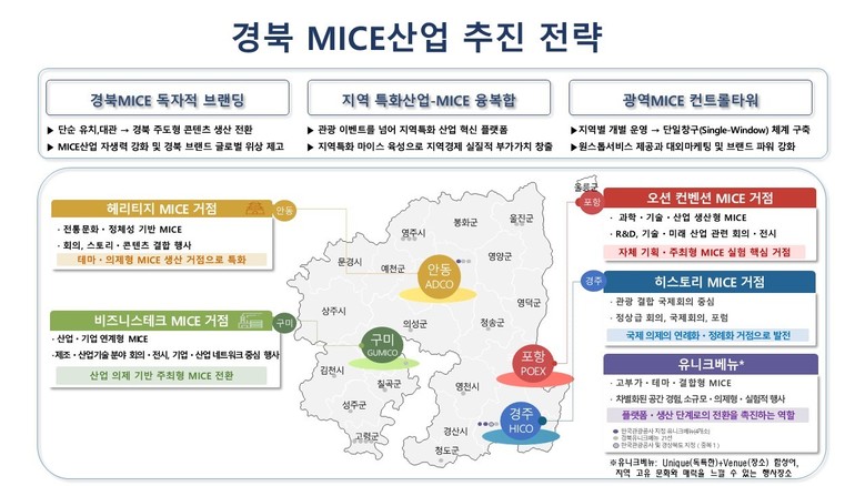 한편, 경북도는 올해 1월 경북형 마이스정책을 전담하는 ‘마이스산업팀’을 신설하였다. 이를 중심으로 지속 가능한 성장 기반을 마련하고 국내외 경쟁력을 갖춘 마이스 중심지로 거듭날 전략을 본격화한다.