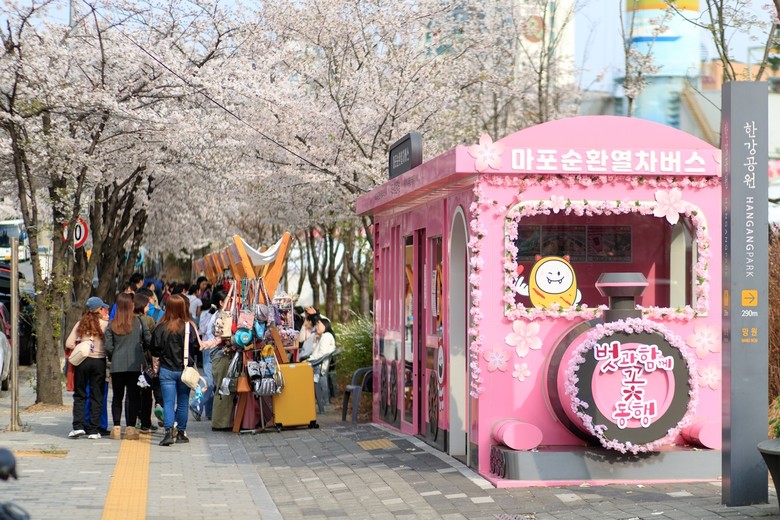 한편, 벚꽃길 일대에서 촬영한 사진을 해시태그와 함께 올리면 추첨을 통해 캐릭터 굿즈 또는 마포순환열차버스 탑승권 등을 받을 수 있는 SNS 인증샷 이벤트도 함께 진행됐다.