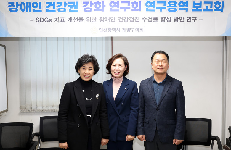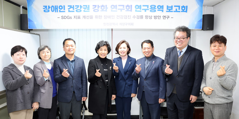 [계양구 세계타임즈=심하린 기자] 인천 계양구의회(조양희 의장) 의원연구단체인 장애인 건강권 강화 연구회(문미혜 대표의원)는 지난 16일 5층 세미나실에서 “장애인 건강권 강화 연구회 용역 최종보고회”를 개최했다.
