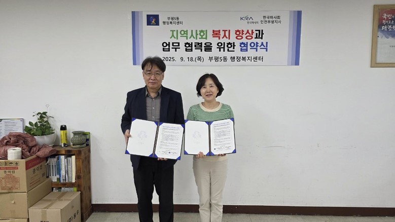 [부평구 세계타임즈=심하린 기자] 부평구(구청장 차준택) 부평5동은 19일 한국마사회 인천부평지사와 지역사회 복지 향상과 상생을 위한 업무 협약을 체결했다.