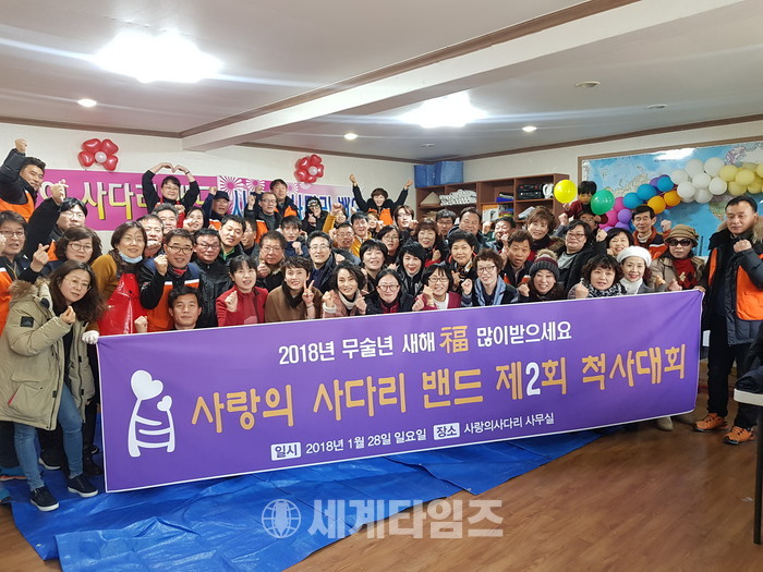 산악회 박재우 홍보부장의 진행된 시산제와 척사대회에는 밴드회원 130명이 참석하여 김경옥 부회장과 짱이 김정숙 총무가 14시간동안 끓인 사골 떡만두국과 다과를 먹으면서 2018년 무술년 회원들의 화합과 단합을 통해서 봉사도 더 열심히 하는 사랑의 사다리 밴드가 될 것을 약속 했다.