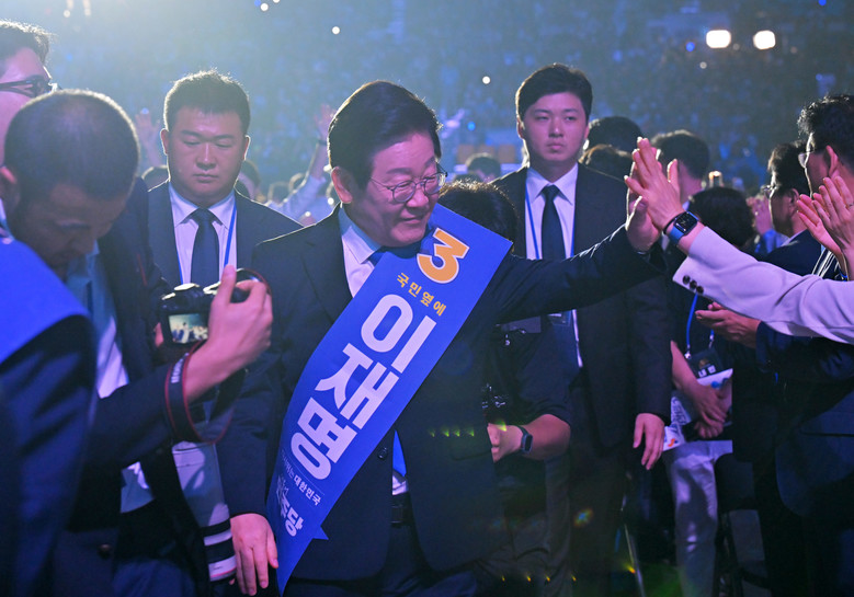 [세계타임즈 = 심귀영 기자] 18일 오후 서울 송파구 올림픽공원 KSPO돔에서 열린 더불어민주당 전국당원대회에서 이재명 대표 후보가 입장하고 있다. 2024.8.18