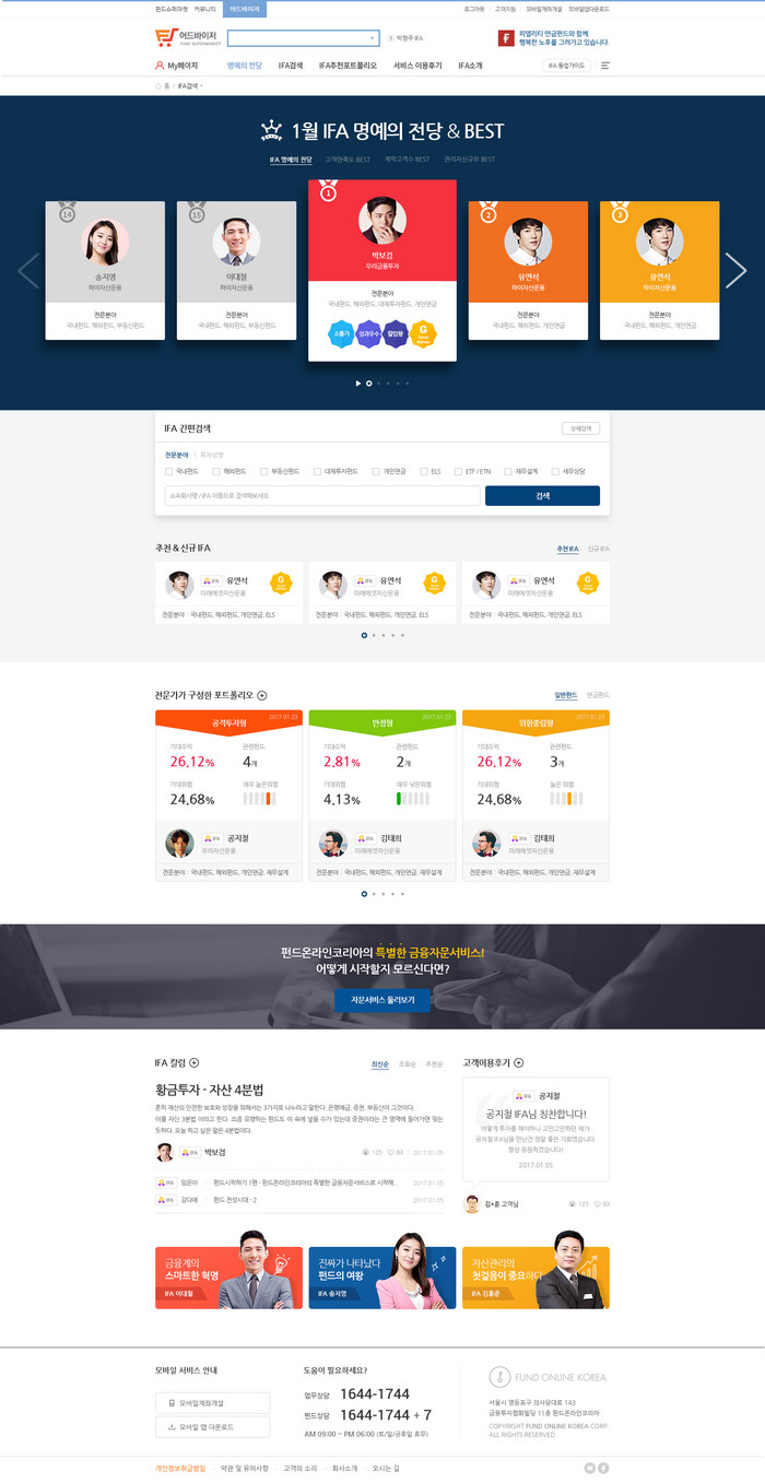 둘째 고객 만남을 지원하는 시스템을 제공한다. 펀드온라인코리아는 매매,뱅킹이 가능한 펀드슈퍼마켓 사이트에 자문서비스를 제공할 수 있는 ‘어드바이저’와 투자정보 공유 공간인 ‘커뮤니티’를 추가 구축할 예정이다. 자문업자 스스로를 홍보할 수 있는 ‘FA칼럼’ ‘FA홈페이지’ 뿐만 아니라 금융에 관련된 상호 지식공유가 가능한 ‘금융지식in’ 등 다양한 소통의 공간이 마련된다. 펀드슈퍼마켓 고객뿐만 아니라 펀드에 관심이 있는 모든 잠재고객들과의 만남이 가능할 것으로 보인다.