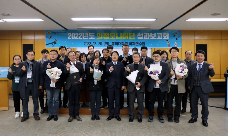 [세종 세계타임즈=이채봉 기자] 세종특별자치시의회(의장 상병헌)는 20일 ‘의정모니터 2022년도 성과보고회’를 개최하고 제3기 의정모니터단의 한 해 활동 내용과 성과를 공유한 데 이어 2023년도 의정모니터단의 운영 방향 등을 논의했다.