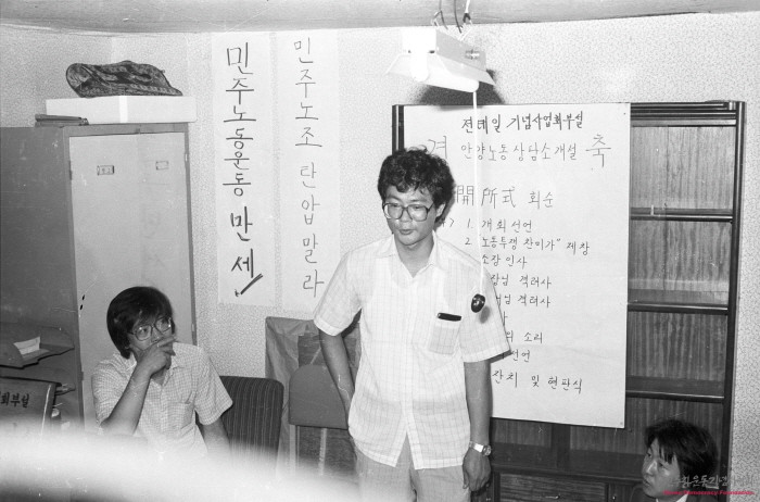 제가 정중하게 거절했더니 그러면, 아무런 간섭도 하지 않을 테니 전태일 기념사업회 부설 안양노동상담소라는 이름을 사용해 달라고 간곡하게 부탁했어요. 그 때 단호하게 거절하지 못하고 생각할 시간을 달라고 말하고 헤어졌어요. 김문수 선배가 집요할 정도로 여러 차례 요청했어요. 그래서 결국 그 이름을 사용하게 되었어요.