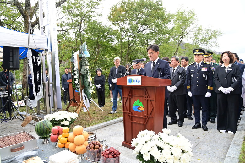 윤경희 청송군수는 추도사에서 “자유와 평화를 위해 목숨을 바치신 호국영령들의 희생을 추모하여 영원한 안식을 기원한다.”며, “이번 합동위령제가 호국영령들의 충절을 되새기고 안보를 위한 의지를 굳건히 다지는 시간이 되길 기대한다.”고 밝혔다.
