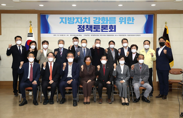[대구=세계타임즈 한성국 기자] 대구시의회(의장 장상수)가 주최하고 시의회 기획행정위원회(위원장 윤영애), 대구지방분권협의회(의장 이인선), 지방분권운동대구경북본부(대표 이창용)가 공동으로 주관하는 ‘지방자치 강화를 위한 정책토론회’가 10월 19일(화) 오후 2시 대구시의회 3층 회의실에서 열렸다.