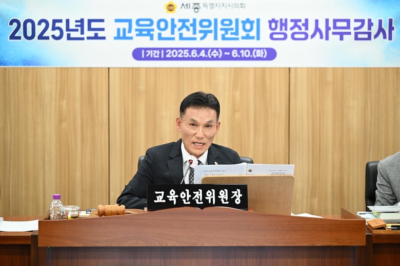 [세종 세계타임즈=이채봉 기자] 세종특별자치시의회(의장 임채성) 교육안전위원회(위원장 윤지성)는 6월 4일부터 9일 사이 3일간 세종시교육청을 대상으로 행정사무감사를 실시했다. 이번 감사에서는 세종시교육청 소속 3관(소통담당관, 감사관, 미래기획관), 3국(교육국, 행정국, 정책국), 5기관(세종교육원, 평생교육학습관, 안전체험교육원, 진로교육원, 학교지원본부)의 2025년 상반기 주요 업무 추진 현황과 하반기 계획을 청취했다. 위원들은 교육행정 전반에 대한 심도 있는 질의와 소통을 통해 세종교육의 발전을 위한 다양한 개선점을 제시하며 밀도 있는 감사를 마무리했다.