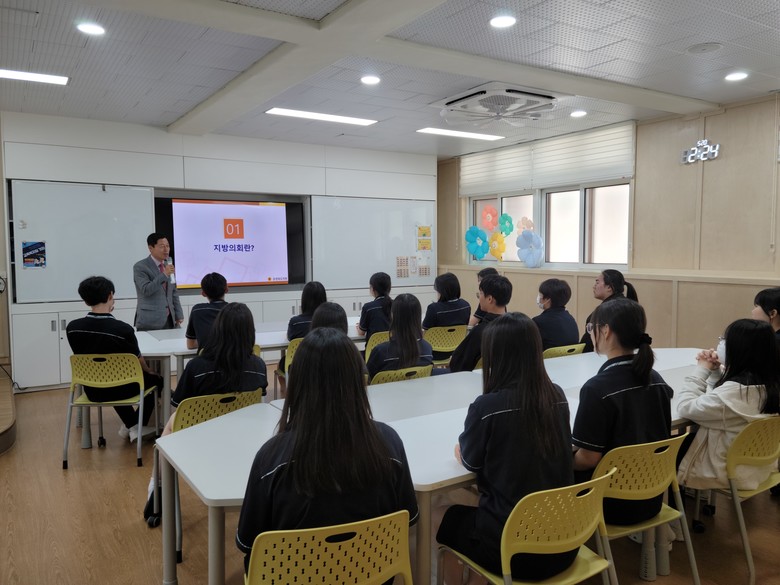 ‘찾아가는 의회교실’은 도의회가 도내 초·중·고등학교를 직접 찾아가 도의회의 역할과 기능을 알리고, 학생들과 소통하는 프로그램이다.