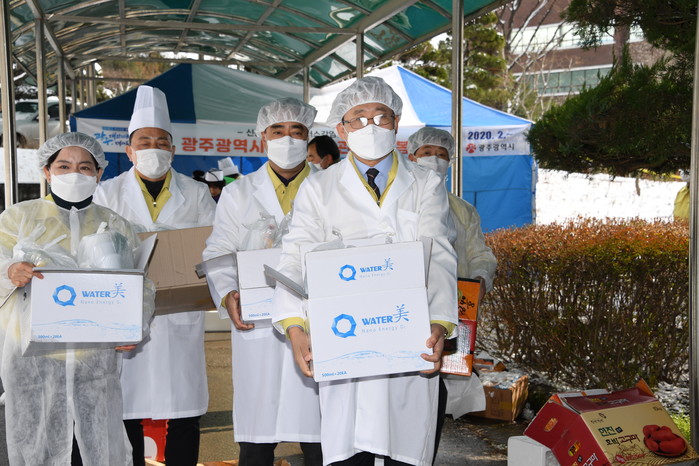김동찬 의장을 비롯한 5개 상임위원장단 등 ‘광주시의회 코로나19 비상대책단’은 이날 소방학교에 격리 중인 시민들의 급식봉사와 현장 의료진과 방역요원 등 관리 인력과 자율봉사자들의 노고를 위로하고 위문품을 전달했다.