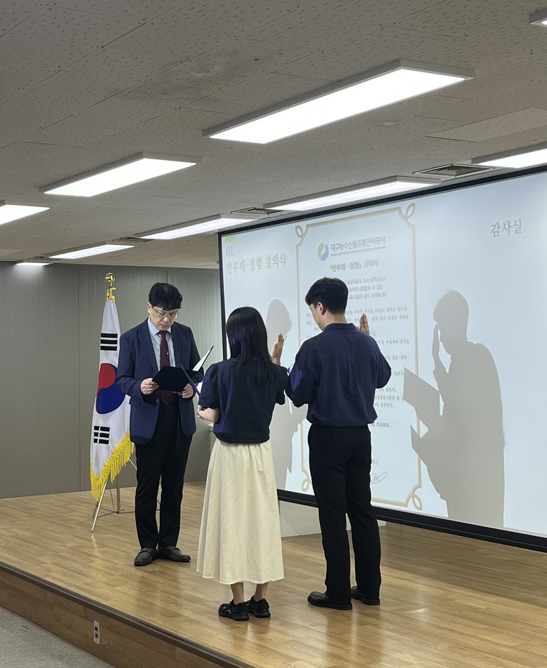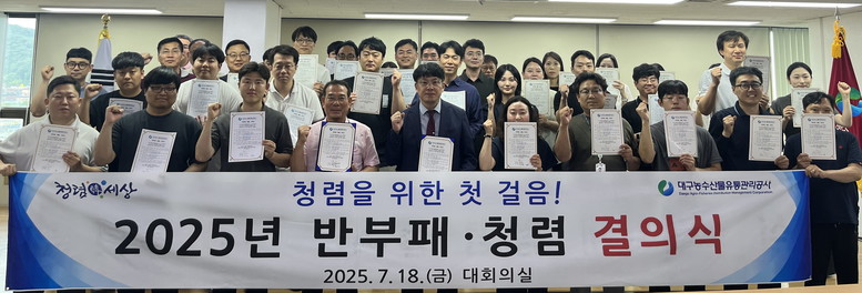 김상덕 대구농수산물유통관리공사 사장은 “이번 결의식을 계기로 우리 공사의 청렴문화가 한층 더 강화될 것이라 확신한다”며, “앞으로도 전 직원이 청렴의 가치를 실천하며 시민들에게 신뢰받는 공공기관이 되도록 최선을 다하겠다”고 강조했다.