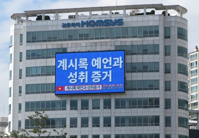 [세계타임즈 백진욱 기자] 서울 강서구의 한 빌딩 광고 전광판에 신천지예수교회의 ‘온라인 말씀 세미나’ 광고 영상이 등장해 주목을 끌고 있다.
