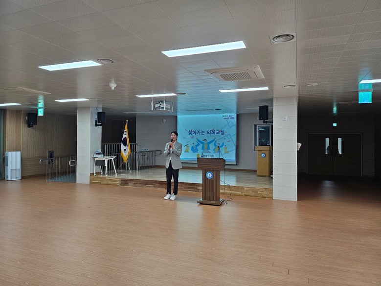 이날 정책복지위원회 소속 조성태 의원(충주1)은 충주 중앙탑고등학교(교장 정덕화)를 방문해 학생 50여 명을 대상으로 △조례 제·개정 및 폐지 △예산 심의와 결산 승인 △대집행기관 질문 △5분 자유발언 등 의회에서 하는 다소 생소한 일들을 알기 쉽게 설명하며 학생들의 이해를 도왔다.