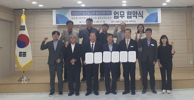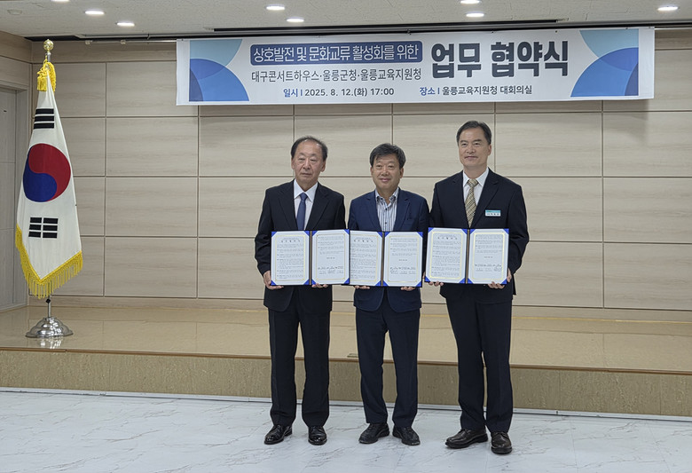 (재)대구문화예술진흥원 대구콘서트하우스(관장 박창근)는 울릉군(군수 남한권), 울릉교육지원청(교육장 이동신)과 함께 8월 12일(화) 울릉교육지원청에서 상호발전 및 문화교류 활성화를 위한 업무협약을 체결했다.