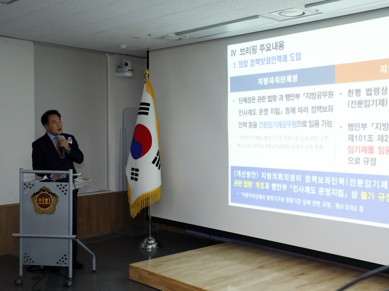 상 의장은 “지방의회가 정책보좌 인력을 활용한 전문적인 분석과 평가 등을 통해 집행부에 대한 견제와 감시는 물론 대안까지 제시하는 등 의회의 주요 기능을 강화해야 할 필요가 있다”면서 “지방의회가 집행부를 제대로 견제‧감시할 수 있는 제도적 기반이 뒷받침되어야 한다”고 역설했다.