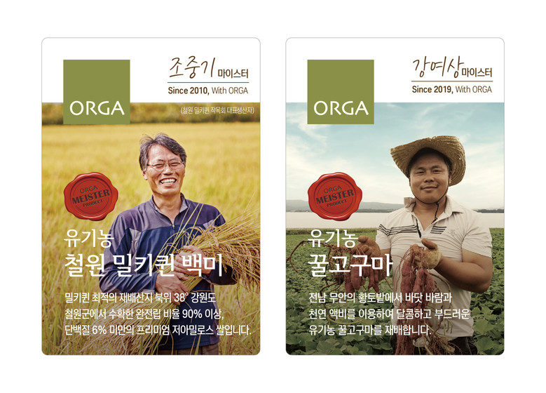 이번에 새롭게 선정된 2명의 올가 마이스터는 ▲전남 무안군에서 2대에 걸친 전업농으로 18년간 자가 제조 발효 액비를 사용하여 고품질의 고구마를 생산해 온 강여상 마이스터 ▲ 강원 철원에서 20년간 우렁이 친환경 농업으로 고품질의 밀키퀸 품종을 생산해 온 조중기 마이스터다.