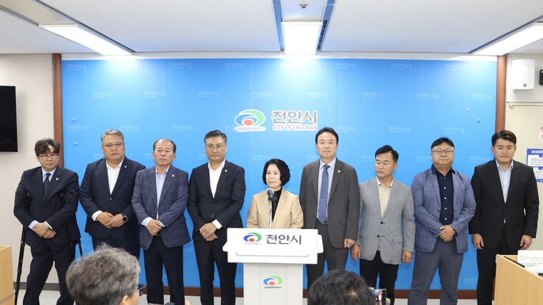 [천안시 세계타임즈=백택기 기자] 천안시의회(의장 김행금) 후반기 의장단 및 위원장이 8일 천안시청 브리핑룸에서 기자회견을 열었다.