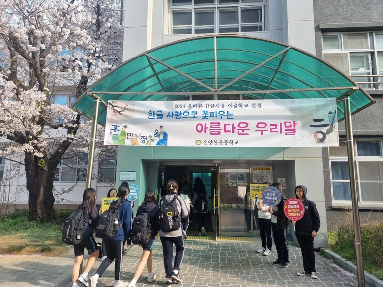 온양한올중학교, 2024 올바른 한글 사용 이끎학교 선정