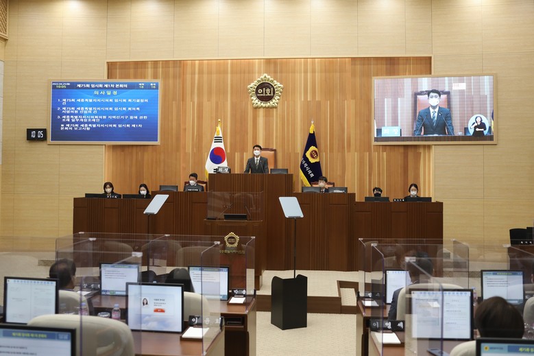 [세종=세계타임즈=이채봉 기자] 세종특별자치시의회(의장 이태환)는 25일 제75회 임시회를 열고 의원 정수 증원에 따라 18개 선거구를 획정한 ‘세종특별자치시의회의원 지역선거구 등에 관한 조례 일부개정조례안’을 통과시켰다.