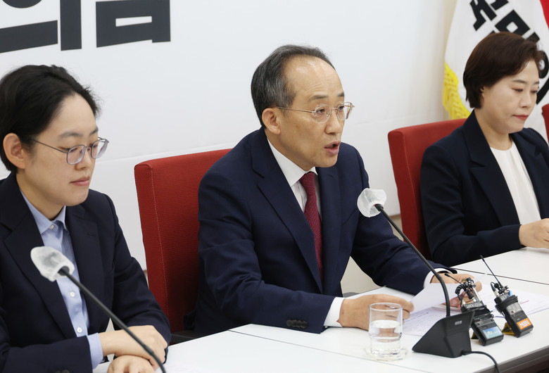 추경호 원내대표는 국감 시작 전 국회에서 기자간담회를 열어 끝장을 봐야 할 것은 더불어민주당의 입법폭주와 정쟁몰이이고, 이재명 대표 방탄국회와 방탄국감이라고 말했다.민주당 박찬대 원내대표가 김건희 여사 의혹을 끝까지 추궁하겠다며 이번 국감을 끝장 국감으로 만들 것이라고 한 데 대한 맞불 대응이다.추 원내대표는 민주당이 이번 국감 기조가 끝장국감이라고 해서 내용이 무엇인지 들여다봤더니 민생 관련 현안은 단 하나도 없고 모두가 정쟁 사안이라고 지적했다.이번 국감을 민생국감으로 치르고자 한다며 그런데 민주당은 민생은 외면한 채 국감마저 소모적 정쟁의 장으로 몰아가려고 하고 있다. 온갖 무분별한 의혹과 루머를 씌우면서 국감장을 정치공세의 판으로 만들겠다는 속셈이라고 비판했다.민주당의 의도는 뻔하다. 이재명 대표의 공직선거법 위반 혐의와 위증교사 혐의에 대한 1심 판결이 다음 달로 다가오면서 오로지 이 대표 방탄을 위해 국정을 마비시키고 탄핵정국을 조성하겠다는 것이라고 주장했다.민주당의 부당한 정치적 공세에 단호하게 맞서고 충분히 시정되지 못하고 있는 문재인 정부의 부정적 유산, 국민에게 큰 충격을 줬지만, 여전히 해소되지 못한 민주당과 문재인 정부 의혹에 대해선 집요하게 지적해 나가겠다고 강조했다.추 원내대표는 민주당이 김 여사 특검법 재발의와 상설특검 병행 추진을 밝힌 데 대해 수사기관의 수사가 진행되는 상황에서 무차별적으로 난사하듯 특검을 몇차례 강행 시도하다가 그것도 잘 안되니 특검과 함께 상설특검을 동시에 진행하겠다고 한다. 정말 국민이 혼란스러워할 것이라고 비판했다.현재는 상설특검이든 일반특검이든 검토할 단계도 아니고 전혀 고려하고 있지 않다며 상위법에 특검 및 상설특검에 관한 내용과 정신이 충분히 투영돼 있기 때문에 법률에 위배되는 하위규칙 개정 시도는 맞지 않다고 생각한다고 말했다.민주당이 김 여사가 증인으로 채택된 국감에선 국회법에 규정된 동행 명령권을 적극적으로 행사하겠다고 밝힌 것에 대해 정쟁용으로 화풀이하듯 국회가 무소불위의 힘을 휘두르는 형식의 발상이라면 국회가 자제해야 한다고 말했다.추 원내대표는 일을 못 하면 선거 전이라도 끌어내려야 한다는 이 대표의 전날 발언에 대해 탄핵을 염두에 두는 듯한이 아니고, 염두에 둔 속내를 그대로 드러낸 것이라며 탄핵을 명백히 시사한 것이라고 생각한다고 지적했다.민주당이 이 대표의 발언을 두고 대통령 거취와 무관한데 한동훈 대표가 진의를 왜곡한다고 주장한 데 대해선 원래 무슨 말 해놓고 발뺌하는 데 선수라면서 제대로 포착하고 언급한 우리 당 대표를 비판하는 건 언어도단이라고 반박했다.누가 봐도 위증교사인 것을 아니라고 강제하는 사람, 그분이 누구인가라며 1심 판결이 다가오니까 민주당이 굉장히 다급한 것 같다고 꼬집었다.