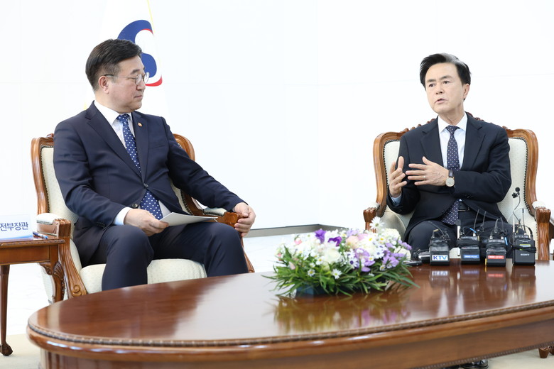 김 지사는 6일 오후 정부 세종청사에서 윤호중 행안부 장관을 만나 ‘행정통합 간담회’를 가졌다.