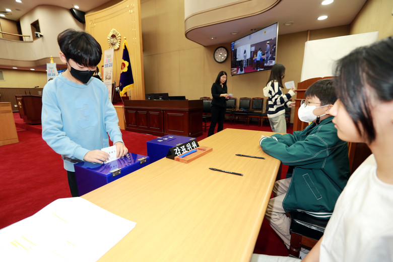 이번 제114회 청소년의회교실에 참석한 학생들은 무기명 투표를 통해 의장을 선출하고 ‘우유급식에 초코우유 도입 조례안’ ‘학교 도서관 대출 가능 권수와 기간 조정 건의안’, ‘운동장 잔디설치 건의안’ 등 6건의 안건을 심의‧의결했다.