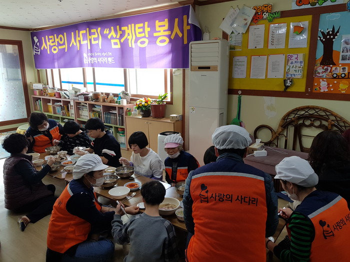 삼계탕 봉사를 총괄한 유희자 나눔봉사단장은 “삼계탕과 닭죽을 맛있게 먹는 장애아이들의 모습에서 행복과 보람을 느낀다.“고 말했다.