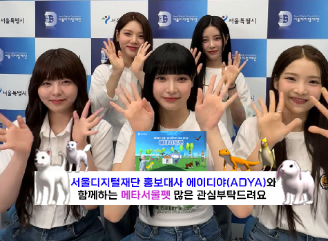 ‘메타서울펫’ 반려동물이 5종(개,고양이,토끼,앵무,도마뱀)인만큼, 5인조 걸그룹 에이디야(연수,서원,세나,채은,승채)가 1인당 1마리씩 입양하고 체험하며 시민들에게 친근하게 홍보한다는 목적이다.