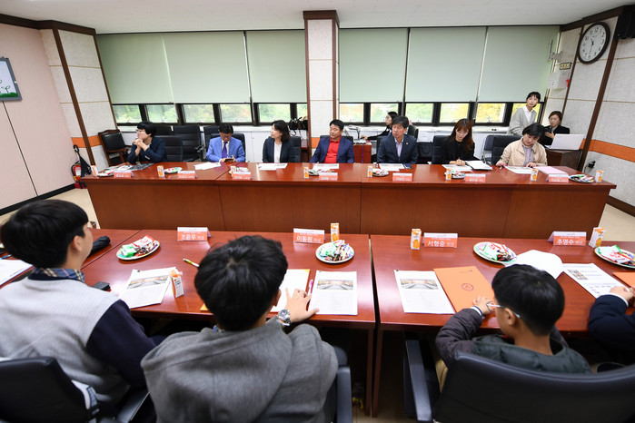 [양구군=세계타임즈 김민석 기자] 아동이 살기좋은 양구군만들기 추진위원회 간담회가 5일 양구교육지원청 3층 대회의실에서 이상건 군의회의장, 장기묘 교육장, 임태현 아동이살기좋은양구군만들기추진위원장, 위원, 학생들이 참석한 가운데 열렸다.