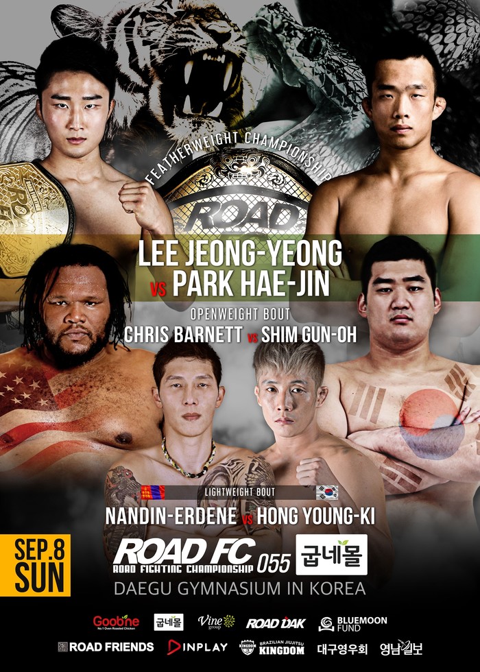 [세계타임즈 김인수기자] ROAD FC 출범 후 처음으로 대구에서 개최되는데, 타이틀전을 하는 선수들의 고향이라 더욱 의미가 깊다. 총 12명의 파이터들이 출전하는 굽네몰 ROAD FC 055의 대진들을 살펴보자.