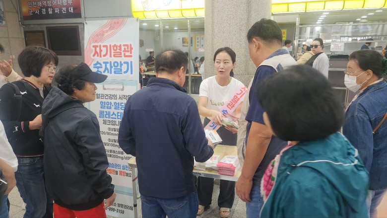 지난 26일 장터 행사에서는 ▲혈압 ▲혈당 ▲당화혈색소 측정과 함께 ‘자기혈관 숫자알기’ 확인 서비스가 진행되어, 참여자들이 스스로 자신의 혈관 건강 상태를 수치로 확인할 수 있는 기회를 제공했다. 또한, 29일에는 연안여객터미널 행사에서는 ▲심뇌혈관질환 예방 홍보 리플릿 배포 ▲금연·절주·식습관 개선 상담, ▲생활수칙 안내 등 정보 중심의 건강 홍보 캠페인을 운영했다.