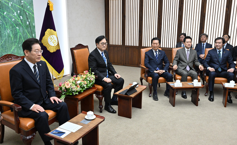 [세계타임즈 = 심귀영 기자] 이재명 대통령은 2일 5·18 정신 헌법 전문 수록과 계엄요건 강화 등을 포함하는 단계적 개헌 추진과 관련해 "이번 기회에 할 수 있는 범위 내에서 조금이라도 해 나가면 좋겠다"며 힘을 실었다.이 대통령은 이날 국회에서 중동 사태 대응을 위한 추가경정예산안에 대한 시정연설에 앞서 우원식 국회의장, 여야 지도부와 환담한 자리에서 이같이 말했다.환담에는 더불어민주당 정청래 대표와 한병도 원내대표, 국민의힘 장동혁 대표, 조국혁신당 조국 대표를 비롯해 국민의힘 소속 주호영 국회부의장 등이 자리했다.
