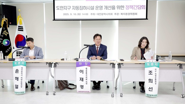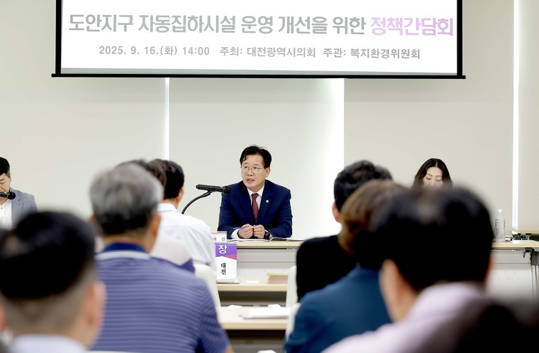 [대전 세계타임즈=이채봉 기자] 대전시의회 복지환경위원회는 16일 도안동 행정복지센터 4층 회의실에서 ‘도안지구 자동집하시설 운영 개선을 위한 정책간담회’를 개최했다.