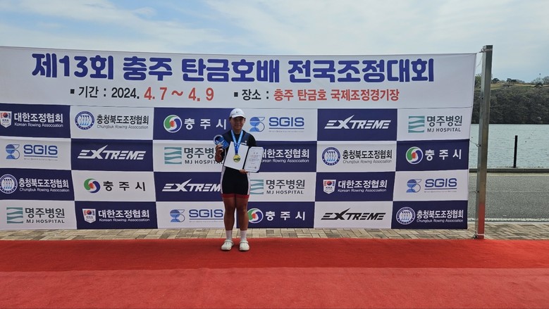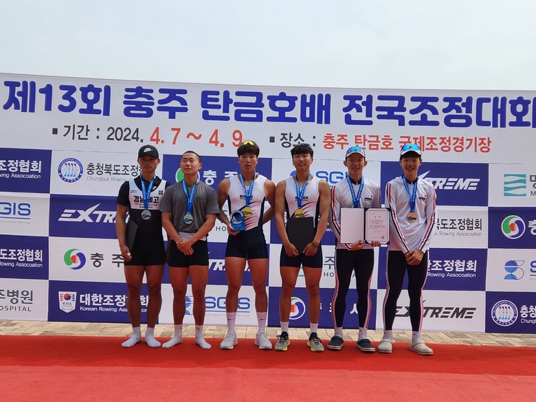 서예서,김정민,김승현(이상 2년), 김지선(1년) 선수(6분58초17)는 충주여고(7분27초27)에 큰 기록 차이를 두며 여유롭게 여고부 쿼드러플스컬 금메달을 획득했다.