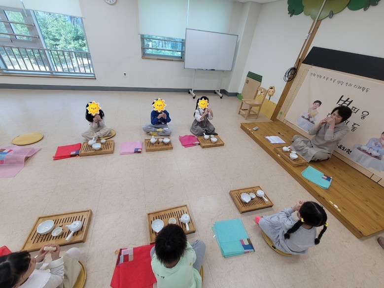 다례(茶禮)활동은 요즘은 체험하기 힘든 방석에 앉기부터 시작하여 나의 신체를 바라보기, 부모님 은혜 생각하기, 다도구의 명칭 알아보고 차와 다과 먹기, 찻상 덮고 생일선물 전달로 진행된다. 올바른 공수법, 다도예절 등을 경험하면서 특별히 부모님의 은혜를 가슴깊이 새기는 이 시간이 유아들에게 특별한 시간으로 인식되고 있다.