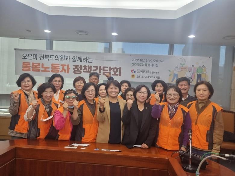 이날 간담회에는 오은미 도의원을 비롯해 손진영 익산시의원, 공공연대노조 전북본부와 아이돌봄노동자, 노인돌봄노동자들이 함께했다.