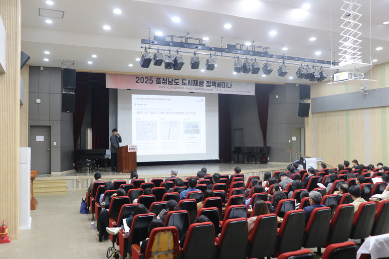 도와 충남 도시재생지원센터(충남경제진흥원)는 31일 천안 나사렛대학교에서 석민 도 주택도시과장과, 이재우 한국도시재생학회장, 도·시군 관계자, 도시재생 전문가, 학계, 지역 활동가 등이 참석한 가운데, ‘2025년 충남도 도시재생 정책세미나’를 개최했다.